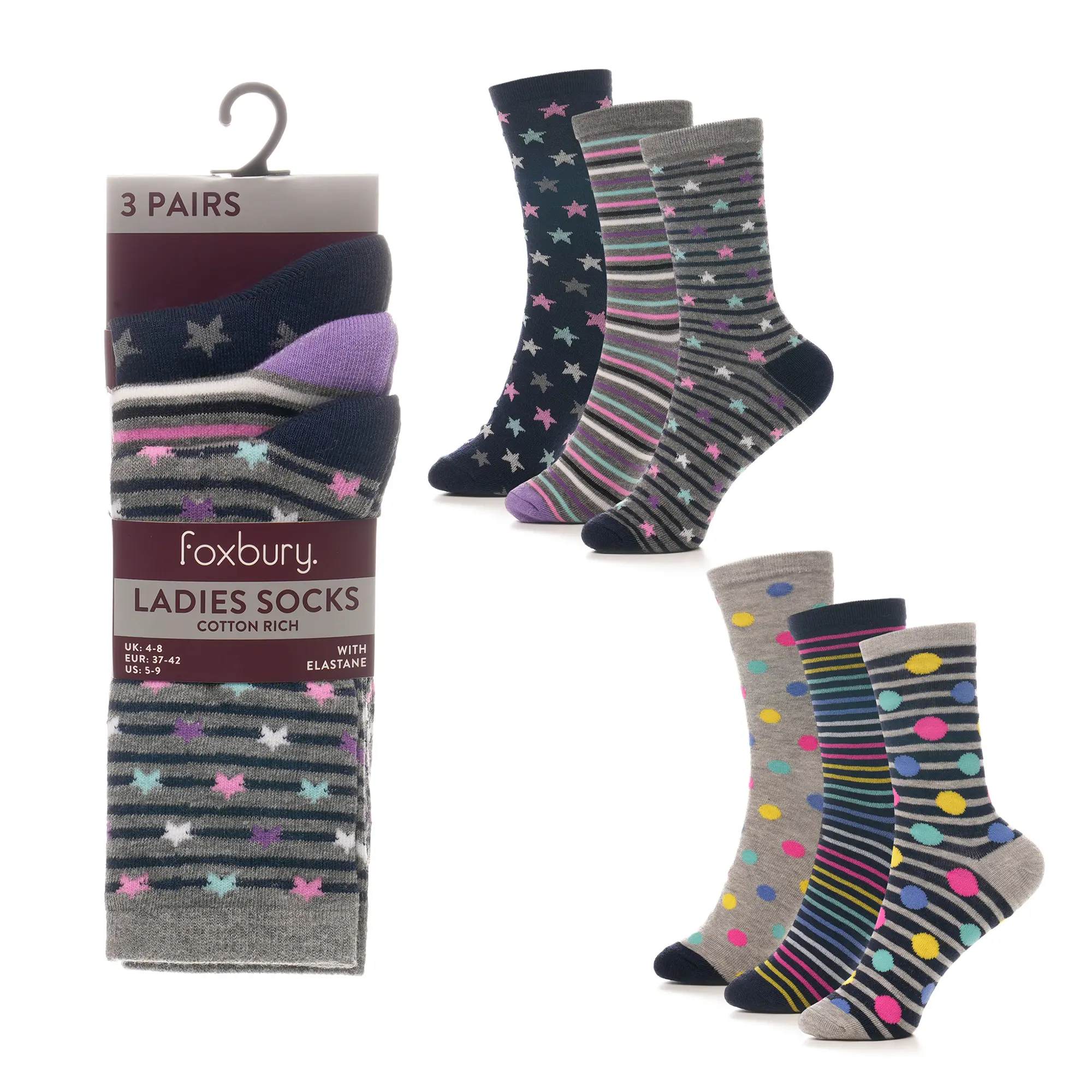 Dömusokkar 3 pk m.mynstri