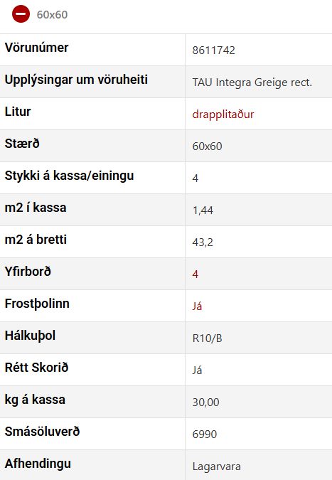 Þessi vara er eingöngu seld í heilum pökkum og eru 1.43 m2 í pakka. Settu inn fermetrafjölda hér að neðan.