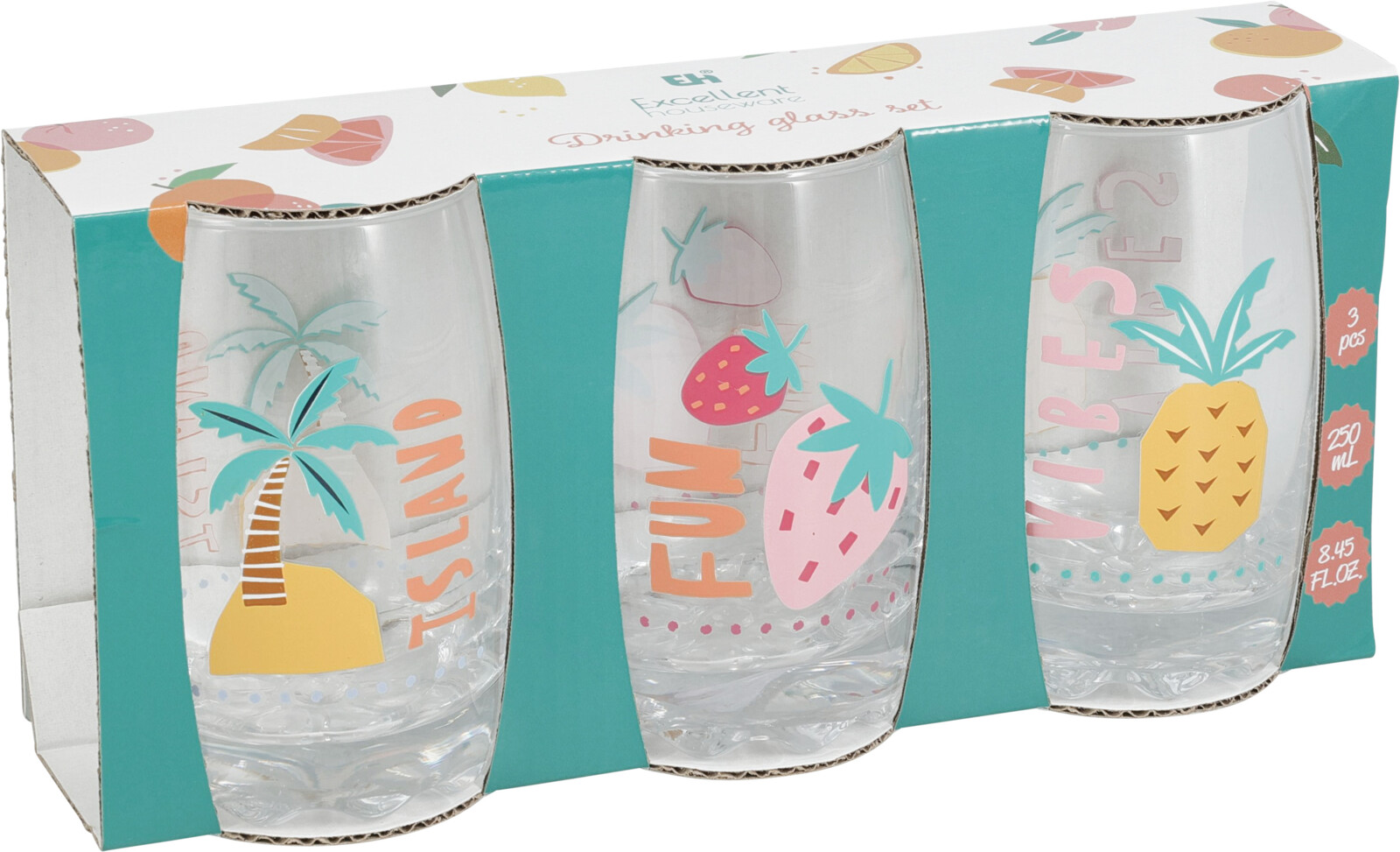 - Drykkjarglös 3 stk, 250 ml
