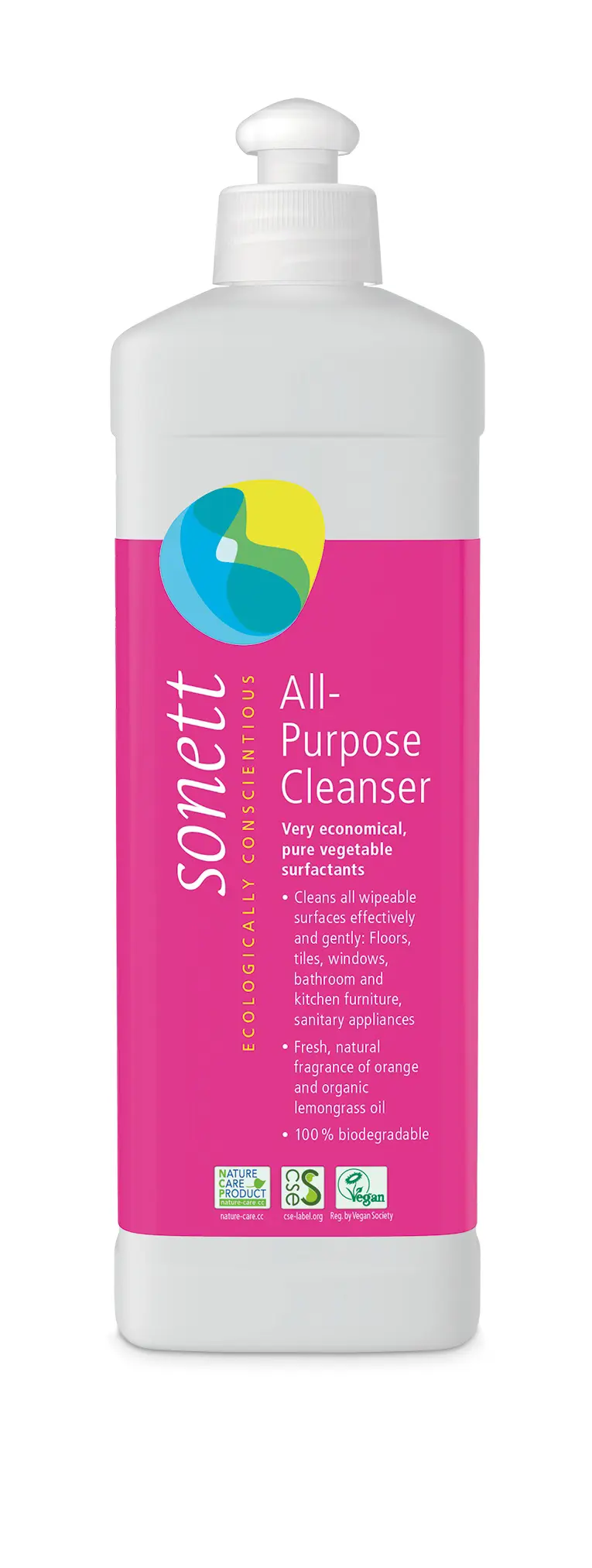 Hagkvæmur hreinsilögur sem inniheldur hrein og náttúruleg yfirborðsvirk efni. Hreinsar á áhrifaríkan hátt gólf, flísar, glugga, baðherbergi, eldhúshúsgögn, hreinlætistæki og fleira. Notkun: Blandið 5–10 ml í 10 lítra af vatni, eftir því hversu óhreint svæðið er. Nokkrir dropar óþynntir má setja í svamp eða rakan klút. Fyrir gluggaþvott: Setjið 5 ml í 5 lítra af vatni, þvoið með svampi og dragið vatnið af með gluggasköfu. Ferskur og náttúrulegur ilmur af appelsínu og lífrænni sítrónugrasolíu. 100% niðurbrjótanleg vara. Fáanlegt í 500ml, 1L og 10L umbúðum
