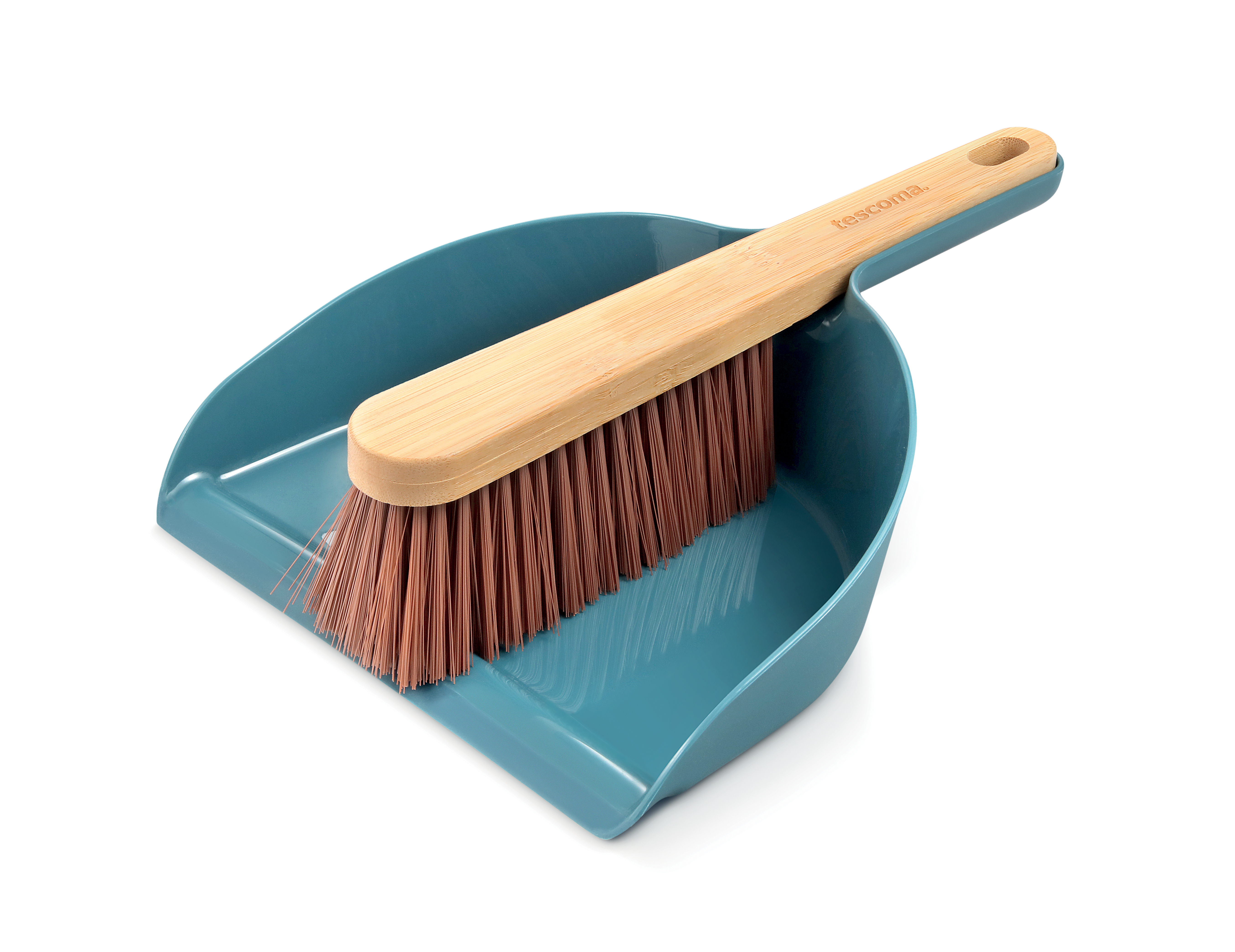 Fægisskúffa og handkústur úr bambus og plasti.