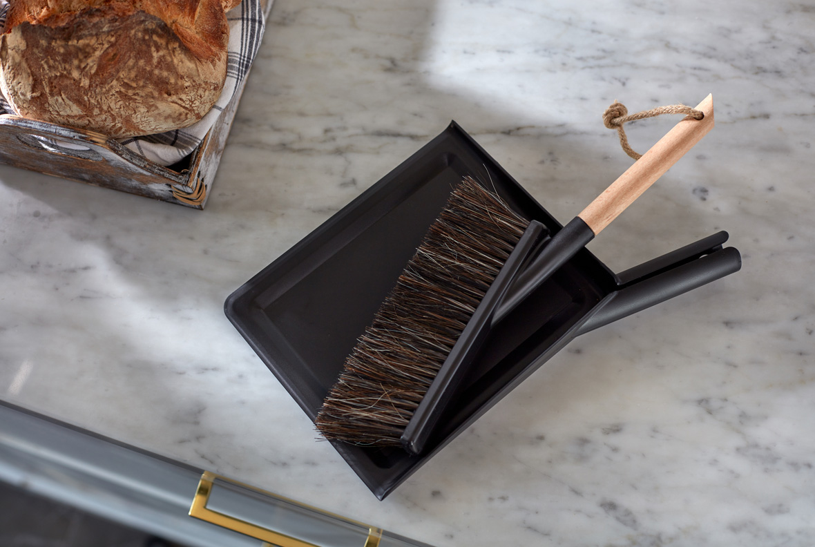 - Sópur með fægiskúffu svartur