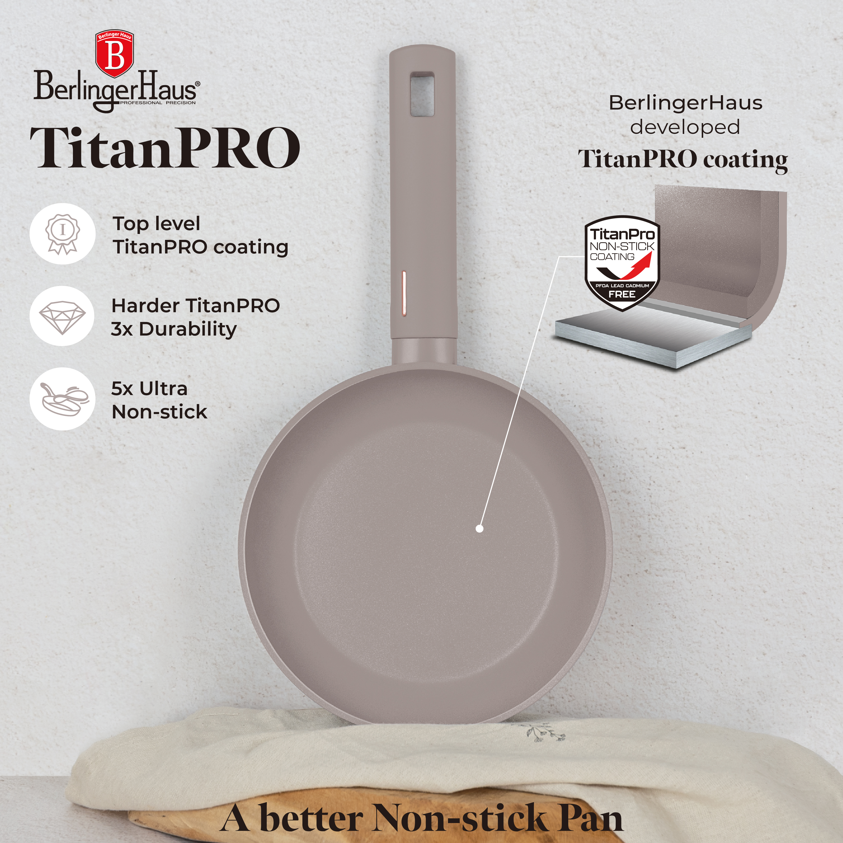 Þreföld endingargóð títan non-stick húðun.