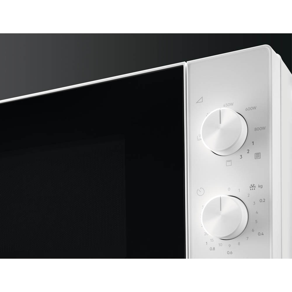 Grilla í örbylgjuofni? Algjörlega! Allt frá stökkri fyllingu lasagnsins til stökku crème brûlée - örbylgjuofngrillaðgerð Electrolux skapar áferð og bragð ofneldunar með hraða og skilvirkni örbylgjuofns. Njóttu afgangsins með upphitunaraðgerðinni Þú hefur gefið þér tíma til að útbúa dýrindis mat, svo það er auðvelt að halda áfram að njóta hans með upphitunaraðgerð þessa örbylgjuofns. Stílhreint útlit fyrir fallegt eldhús Njóttu hreins og einfalds útlits þessa örbylgjuofn í eldhúsinu þínu. Samsett eldun - fyrir fjölnota eldun Samsett eldun gerir þér kleift að velja rétta örbylgjuofnaðgerðina fyrir afþíðingu, gufu eða grillun Tæknilegar upplýsingar Örbylgjuofn 800 W Örbylgjustillingar: 5 stk Grillafl 1000 W Rúmmál: 21 l Eldunaraðferðir: Grill, örbylgjuofn, örbylgjuofn + grill Þvermál plötu: 270 mm Aflstýring með hnappi Til að opna hurðina: Hnappur Innra ljós Staðalbúnaður: Grill Ofninnrétting: Málað stál Litur ofnsins: Grár Lengd rafmagnssnúru: 100 cm Tengistyrkur: 1270 W Nauðsynlegt öryggi: 10 A Innri mál örbylgjuofns H x B x H: 218 x 316 x 303 Mál H x B x D (mm): 262 x 442 x 345 Þyngd: 11,5 kg