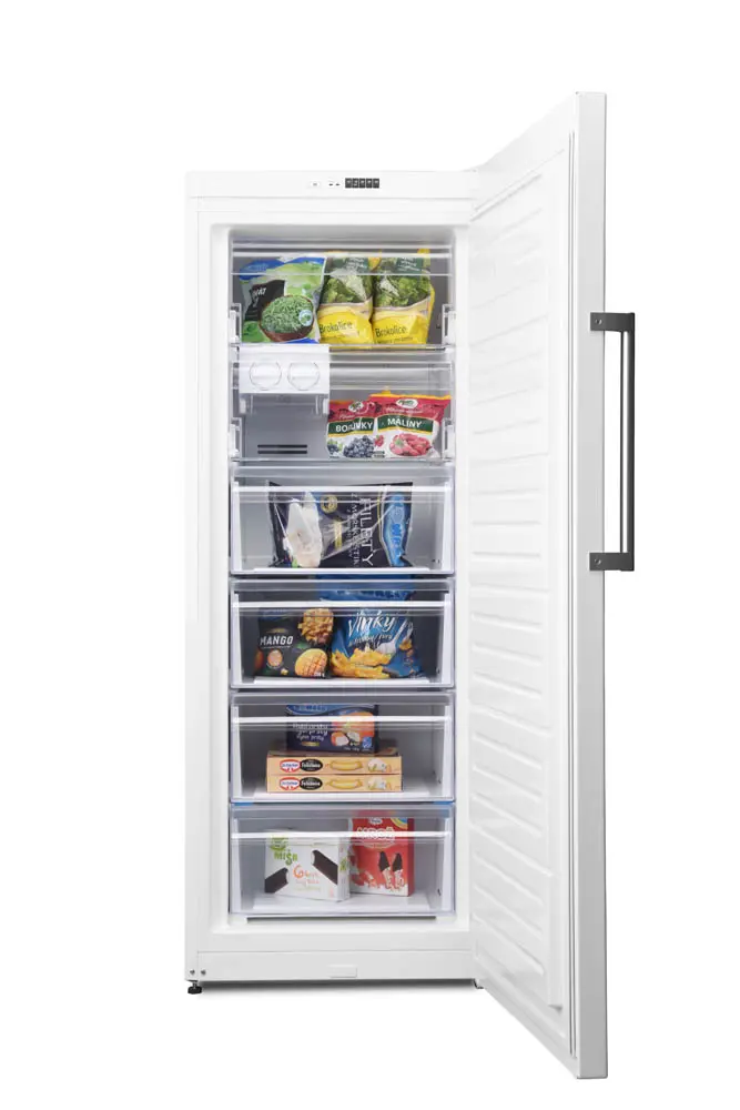 Rúmmál frysti: 226 l Fjöldi aðskildra hólfa í frysti: 6 Orkuflokkur 2021: F Orkunotkun á ári: 287 kWh / ár Frystigeta: 16 kg / 24 klst. Loftslagsflokkur: T, SN Geymslutími ef bilun verður: 10 klst. Hljóðstig : 41 dB Hljóðflokkur: C Breidd frysti: 59,5 cm Hæð frysti: 155,5 cm Dýpt frysti: 65,2 cm Vörumál: Breidd: 59,5 cm Hæð: 155,5 cm Dýpt: 65,2 cm Þyngd: 62 kg Stærðir pakka: Breidd: 66,4 cm Hæð: 160,5 cm Dýpt: 70,2 cm Þyngd: 66 kg