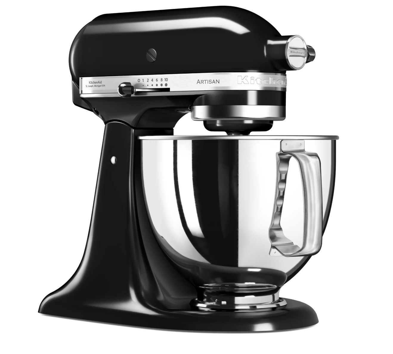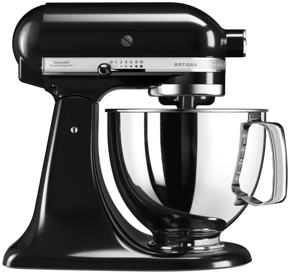 5KSM125EOB - 4,8L 300W svört hrærivél - KITCHENAID 5KSM125EOB 4,8L Ónyx svartur Artisan standhrærivél. Það fylgir 4,8 lítra skál úr fægðu ryðfríu stáli, 6 víra þeytara, flatur þeytari og deigkrókur. 10 hraðar. Beinmótor fyrir framúrskarandi afköst: til að útbúa lítið eða stórt magn, án þess að tap berist á milli mótorsins og aukahlutanna. - Skálarrúmmál: 4,8 lítrar. Afl: 300W . Snúningshraði: 220 snúningar á mínútu. Breytilegur hraði: Já. Kapallengd: 1,454 m. Þyngd pakka: 11,3 kg. Þeytarar: Já. Uppþvottavélaþolnir hlutar: Já. AC inntaksspenna: 220-240V. Inntakstíðni aflgjafa: 50/60Hz. Litur: Svartur. Þyngd: 10,4 kg. Breidd: 24 cm. Dýpt: 36 cm. Hæð: 37 cm. Efni skálarinnar: Ryðfrítt stál. Efni: Sinkhúðað stál. Þeytari: Já. Stærð umbúða (L x B x H): 413 x 406 x 273 mm.