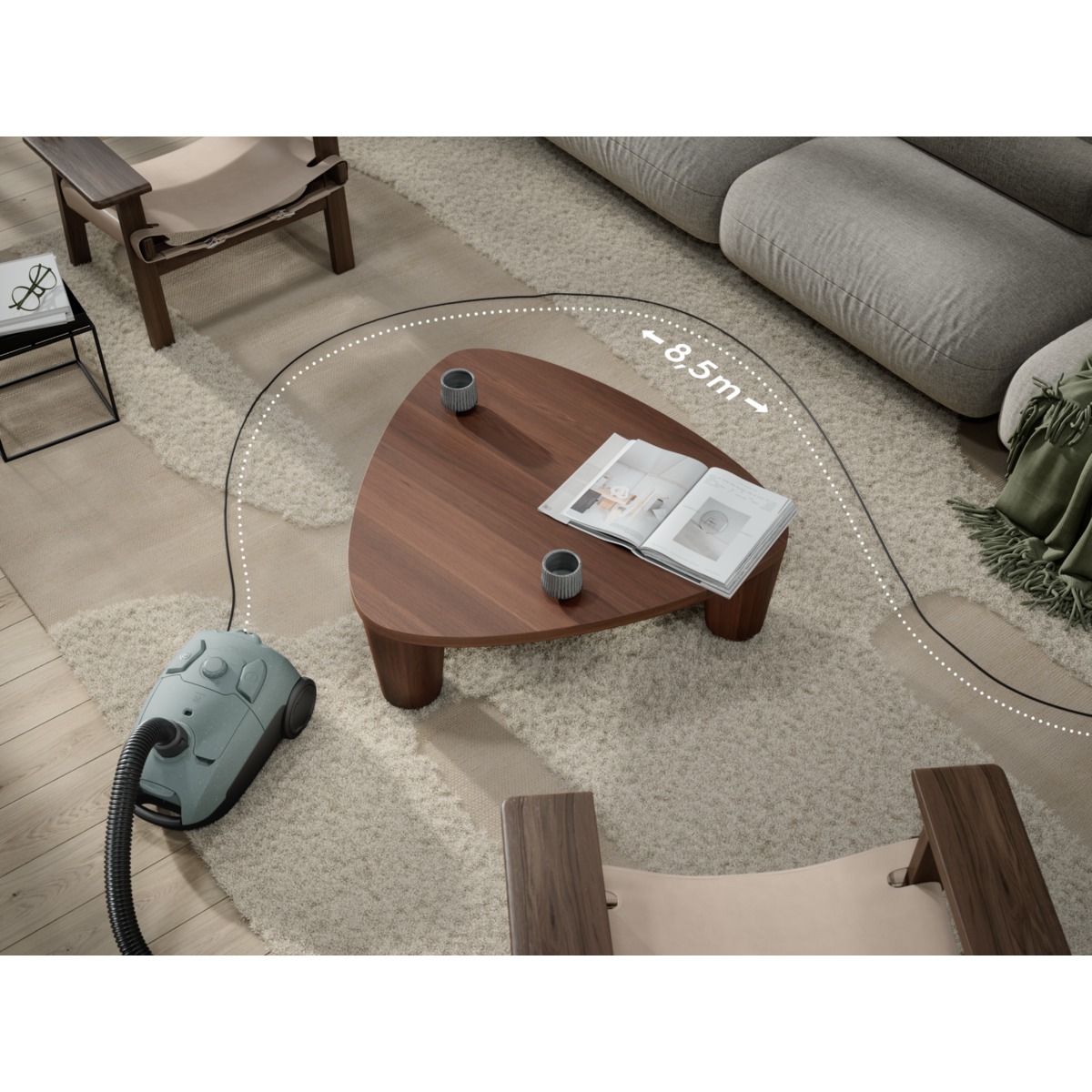 Með öflugri HEPA síu. Allfloor haus tryggir að auðvelt sé að ryksuga parkett eða teppi. Snúra er 6 metrar, vinnuradíus 8,5 metrar.