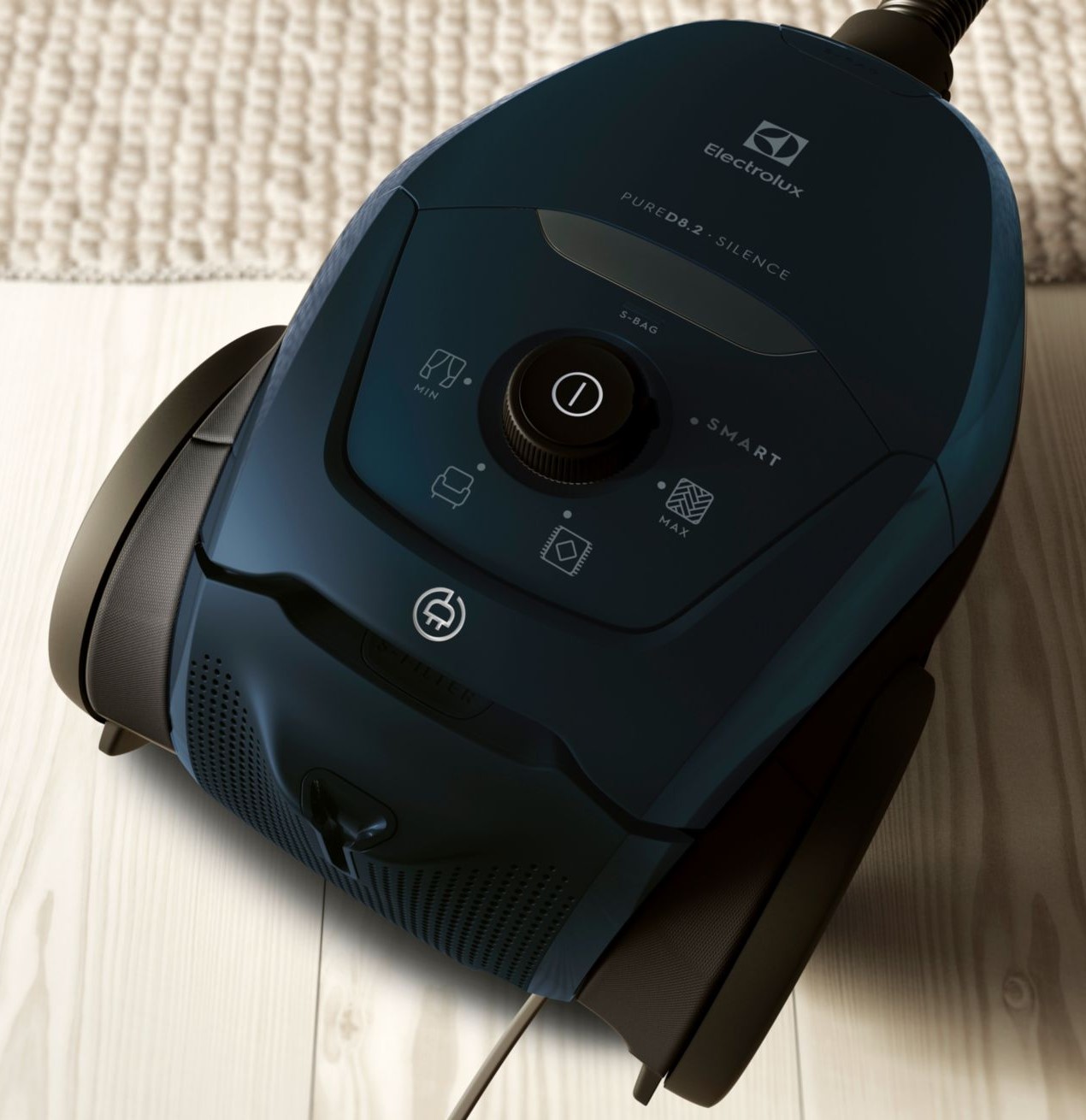 Snúruvinda: Sjálfvirkur snúravindur Skolanleg hreinlætissía E12: Útblástursía Handvirk aflstýring: Sogkraftur er stjórnað handvirkt í gegnum aflstýringarstýringu ryksugunnar. S-bag® Anti-Odor: s-bag® er staðlaður poki sem er hannaður fyrir alla strokka ryksuga frá Electrolux Group (Electrolux, Volta, Tornado, AEG) og Philips. Allt sem þú þarft að muna er s-bag®! Rykpokavísir: Með rykpokavísinum geturðu séð hvenær tími er kominn til að skipta um ryksuga poka Handfang að framan og efst: Stórt vinnuvistfræðilegt burðarhandfang og gripvænt handfang þegar upprétt er staðið. Mjúk gúmmíhjól: Með mjúkum gúmmíhjólum forðastu rispuð gólf meðan á hreinsun stendur. Að auki minnkar hávaðinn þegar þú dregur ryksuguna á eftir þér. Sveigjanlegur samsetningarstútur: Lítill og sveigjanlegur samstútur fyrir húsgögn og harða fleti. Hljóðstyrkur, dB: 57 Loftstreymi, hámarks l / s: 26 Þyngd, aðeins vél kg: 5 Mál vörunnar H x B x D, mm: 246x300x442 Árleg orkunotkun, kWh: 21,4 Drægni, m: 12} Snúrulengd, (u.þ.b.) M: 9} Ryk frásog teppi (%): 85,7} Töskutegund og rúmmál, l: 3,5, s-poki klassískur langur árangur} Aukabúnaður til að staðsetja: Handfang sem hægt er að festa} Stútur: OneGo Power Clean stútur} Auka stútur: Parketto Pro með læsingu} Tómarúm, hámarks kPa: 19,6}