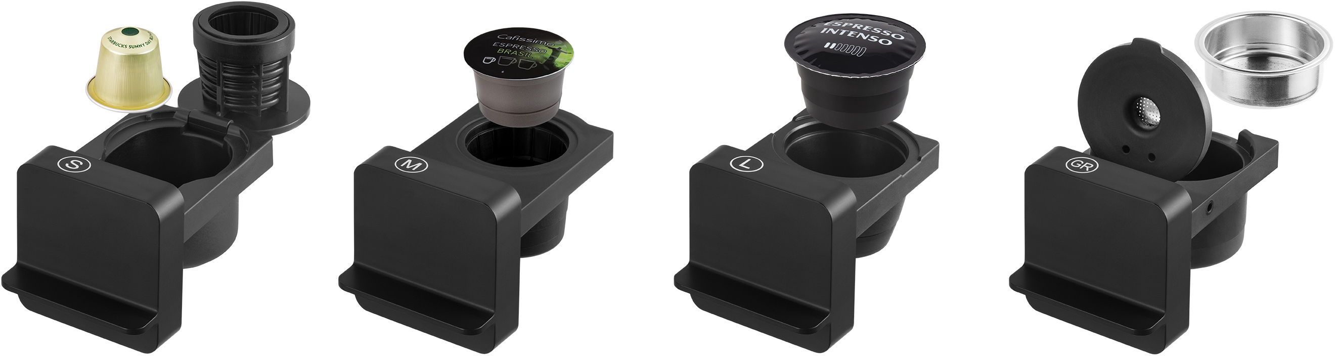 Hylkjavél með breytistykki fyrir 3 tegundir af hylkjum og einnig 1 fyrir malað kaffi. Hægt að velja um 3 bollastærðir. Vatnstankur 0,8 ltr. Þrýstingur 15 bör. Stærð 30 x 28 x 12 sm.