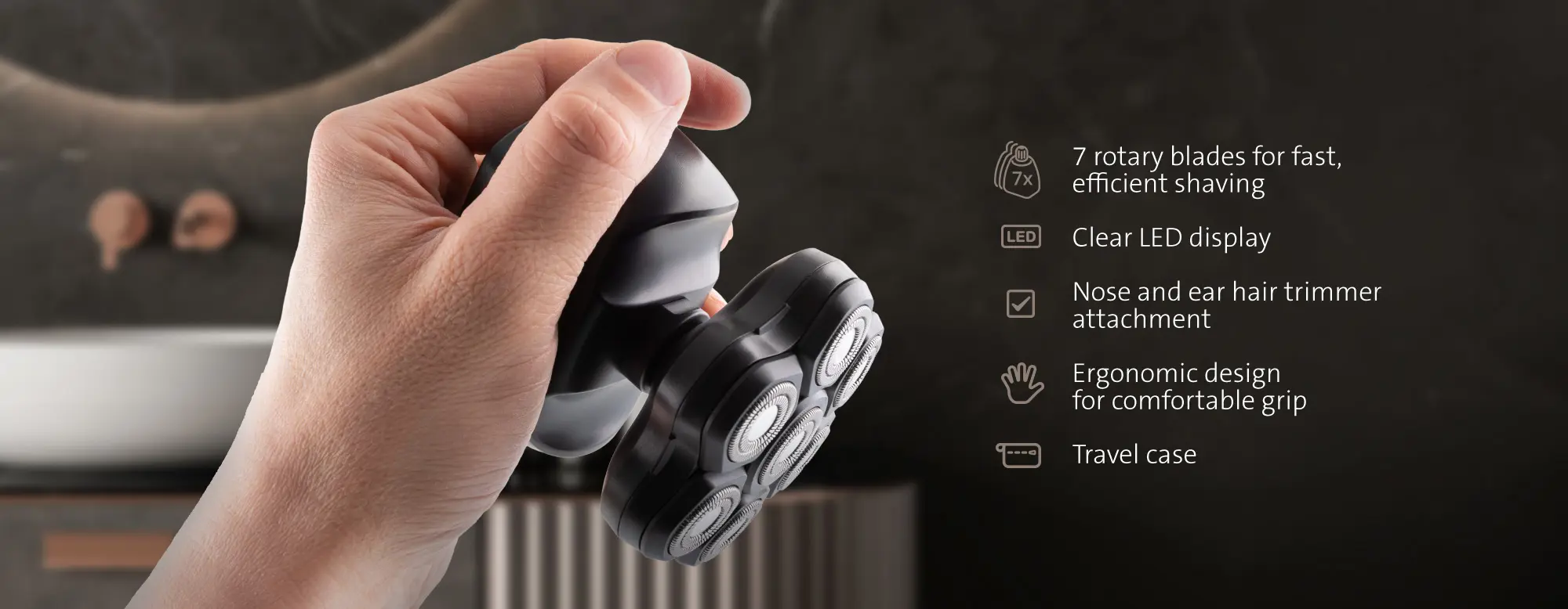 - Fjölhæfni: Kemur með haus fyrir nefhár og bartskera með stillanlegum kambi (3-7 mm).