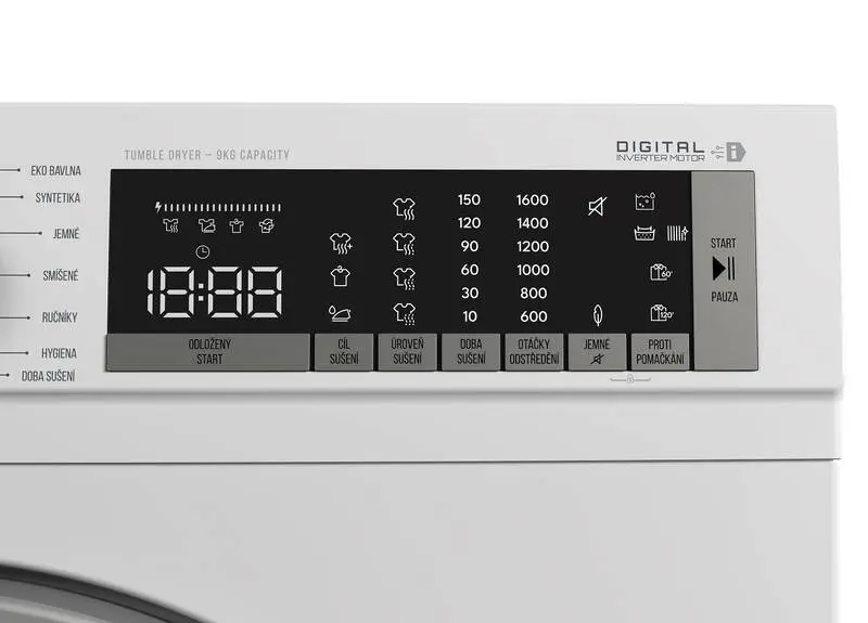 Þurrkari með kolalausum mótor. Tekur 9kg. Er með 15 mismunandi þurrk forrit. LED lýsing í tromlu. Hljóðstig 64 dB.