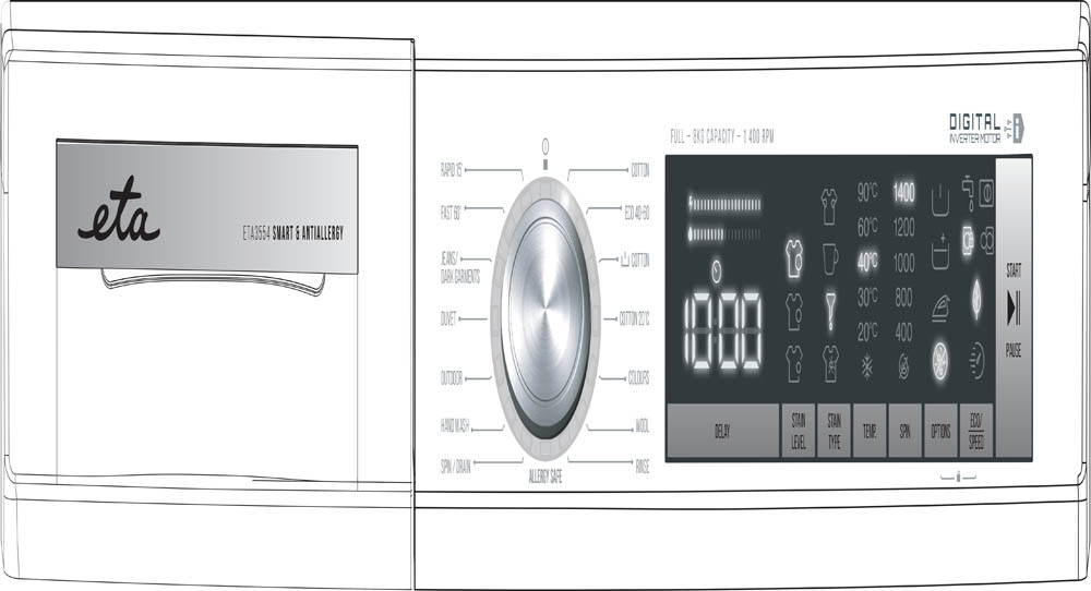 ETA þvottavél – 8 kg, 1400 snúningar/mín, orkuflokkur B