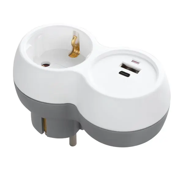 - MILLITENGI 1xTENGILL + USB A+C, Hvítt/Grátt, OR-AE-13302(GS)