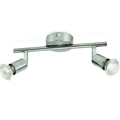Limbali kastarinn er nikkelhúðaður með tvöföldum ljósum sem er hægt að stilla. Hann er hannaður fyrir GU10 perur og kemur án perna. Tæknilegar upplýsingar: -Tveir GU10 lampar (án perna) -Nikkelhúðað yfirborð -IP20 verndun Helstu eiginleikar: - Stílhrein hönnun - Sveigjanleg stilling á ljósum - Orkusparandi með GU10 LED Fylgihlutir: Engir fylgihlutir