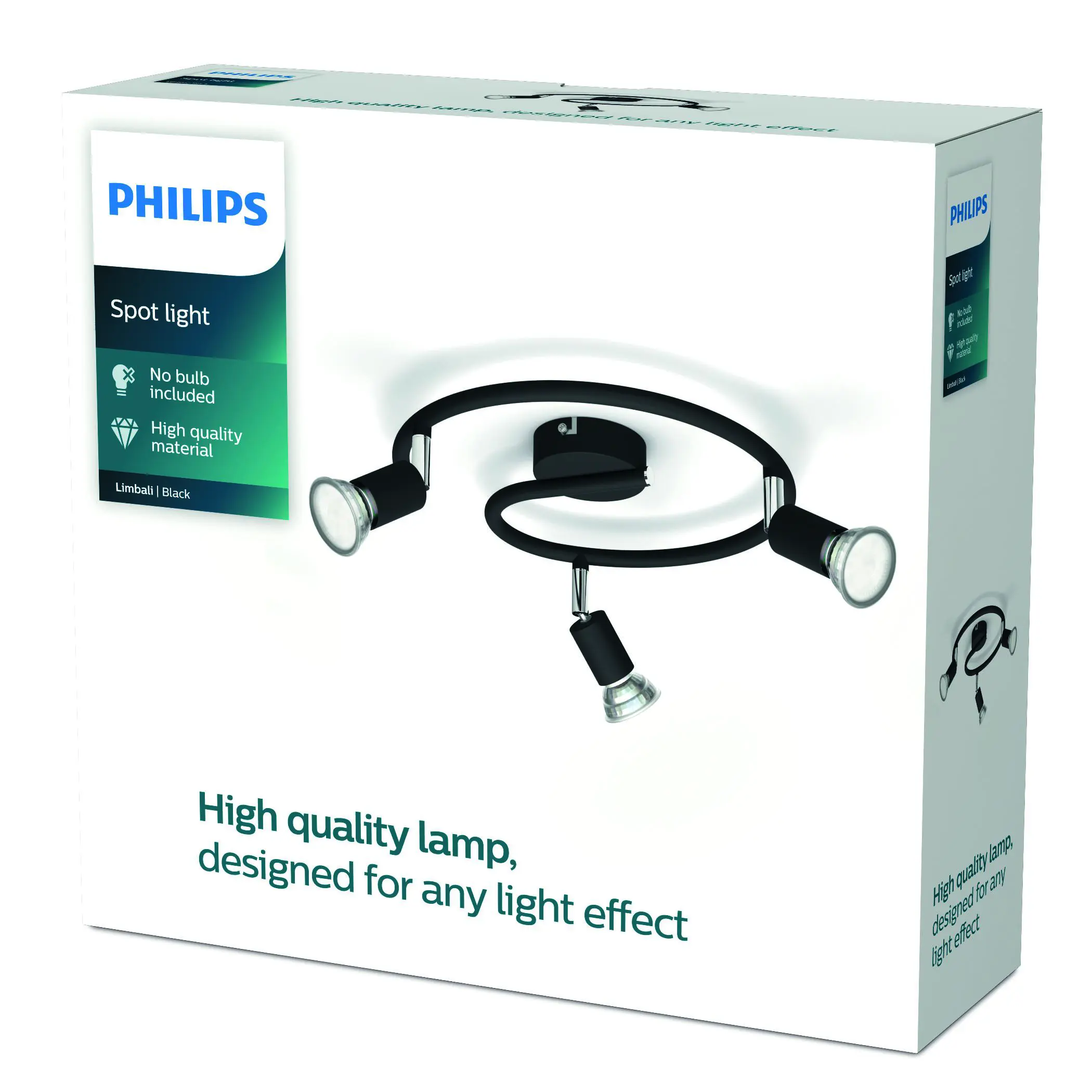 Limbali svartur spiral kastari með þremur GU10 ljósum (hámark 50W) til að veita sveigjanlega og bjarta lýsingu. Tæknilegar upplýsingar: -3xGU10 (hámark 50W) -Svartur -230V -IP20 Helstu eiginleikar: - Stillanleg ljós - Nútímalegt útlit - ClickFix festing Fylgihlutir: Engir fylgihlutir