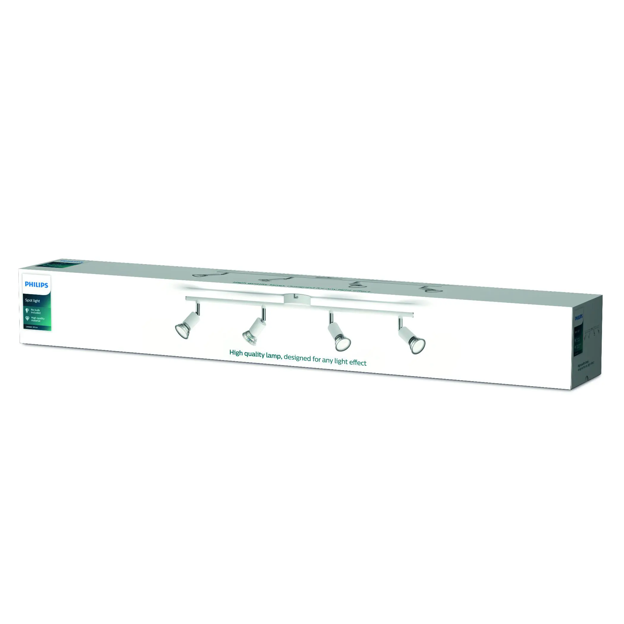 Limbali kastarinn er með fjórum GU10 ljósum (hámark 50W), stillanlegum hausum og hvítu yfirborði. Fullkominn fyrir lýsingu á stærri rýmum. Tæknilegar upplýsingar: -4xGU10 (hámark 50W) -Hvítt yfirborð -230V Helstu eiginleikar: - Fjórföld ljóslausn - Stillanleg - Orkusparandi möguleikar Fylgihlutir: Engir fylgihlutir