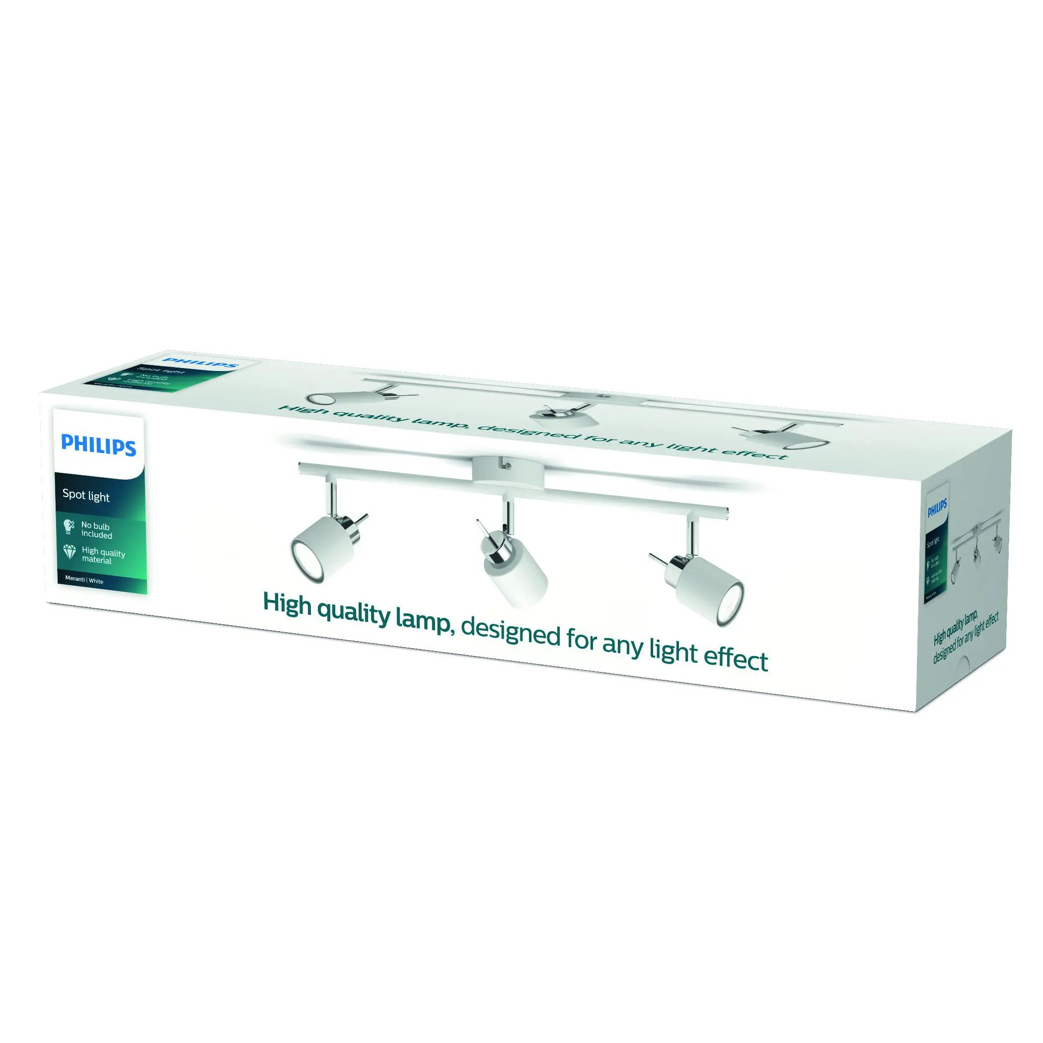 Meranti kastarinn er með þremur GU10 ljósum (hámark 35W) í hvítum lit, til að veita sveigjanlega lýsingu í stofum og vinnurýmum. Tæknilegar upplýsingar: -3xGU10 (hámark 35W) -Hvítur -230V -IP20 Helstu eiginleikar: - Stillanleg ljós - Einfalt og nútímalegt útlit Fylgihlutir: Engir fylgihlutir