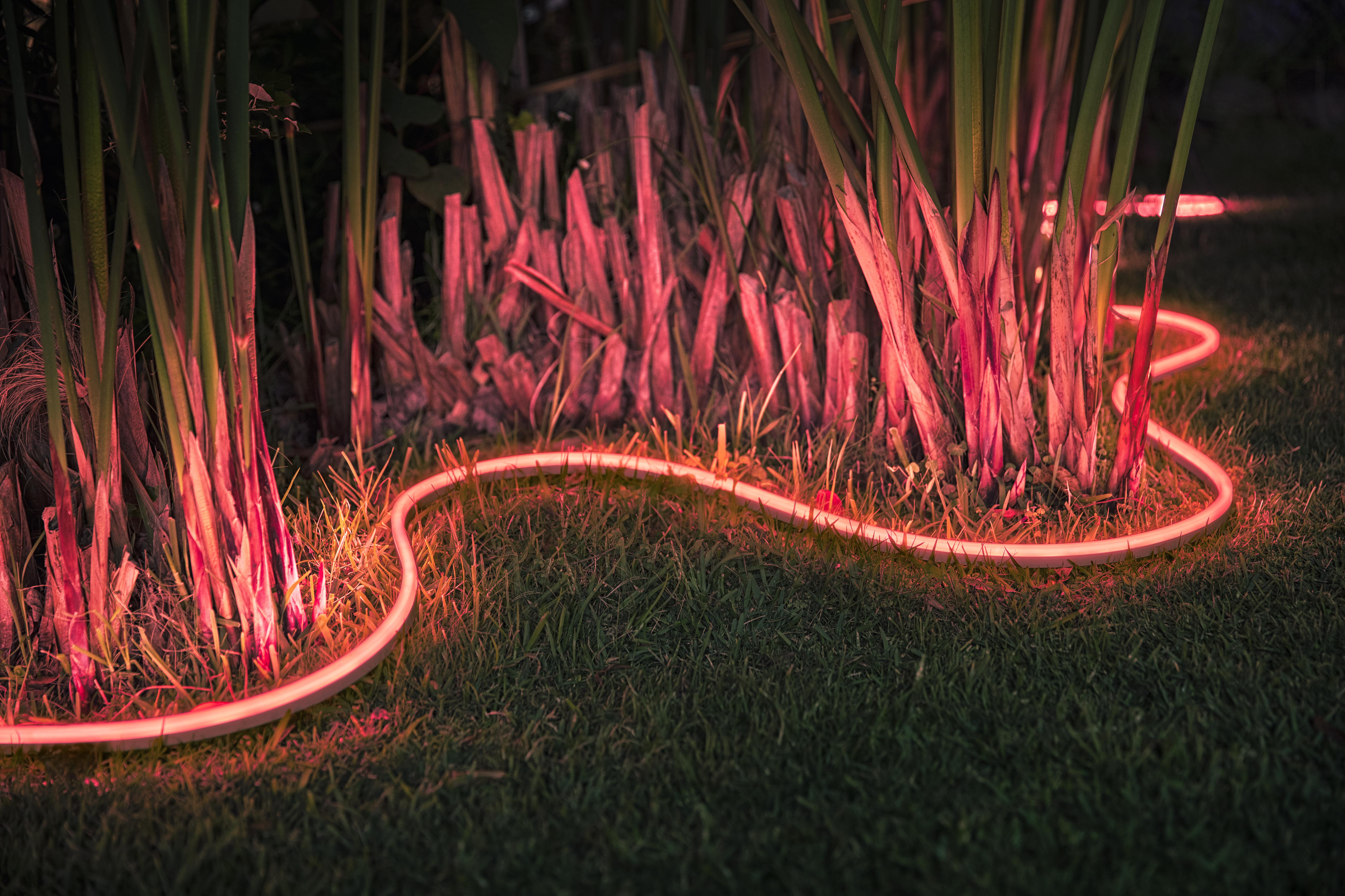 Útiborðinn frá Philips HUE henntar frábærlega í útilýsingu. Þú stjórnar litunum sem þú vilt hafa. Eins er hægt að setja upp sunset/sunrise forritun í Philips HUE appinu og þarf því ekki að setja borðann á sólúr. Ekki er hægt að stytta borðann eða lengja hann. Nauðsynlegt er að vera með Philips HUE brúnna til að geta stýrt lýsingunni í borðanum Hæð: 20mm Breidd: 11mm IP67 staðall er á borðanum.