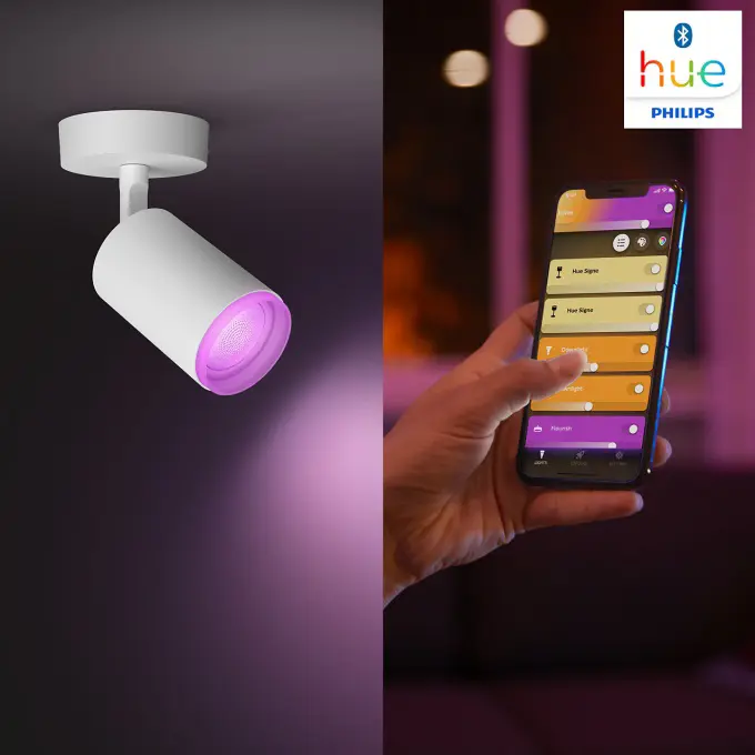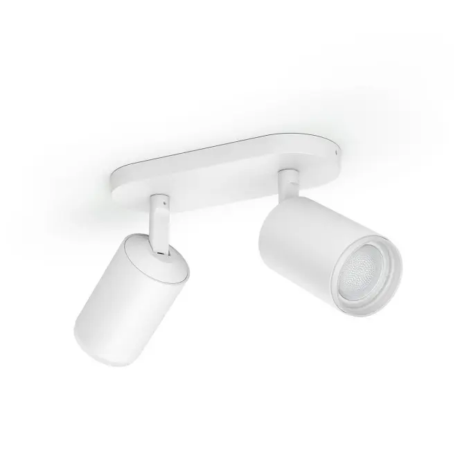 Fugato kastarinn býður upp á sveigjanlega snjalllýsingu með tveimur hausum. RGBW gefur litríka lýsingu og bæði hlýtt og kalt hvítt ljós. Tæknilegar upplýsingar: - 2x5.7W LED - RGBW - 700 lm (4000K) - IP20 - Líftími: 15.000 klst Helstu eiginleikar: - 16 milljónir lita - Dimmable með Hue appi - Stjórn í gegnum Bluetooth eða Hue bridge Fylgihlutir: Engir fylgihlutir