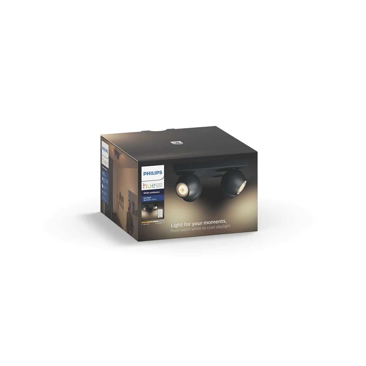2 faldur spot kastari frá Philips HUE, hægt er að breyta lýsingu bæði í appi og með fjarstýringu. Dimmanlegur - Já (í appi) Afl 5W (á peru) Ljósmagn 350lm (á peru) Litarhitastig 2200-6500K Líftími 15.000 klst Stærð Ø 10.2 cm Hæð 10.3 cm