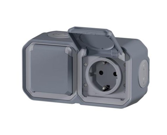 - TENGILL 2x PLEXO N GRÁTT, TVÖFALD. 69742L MEÐ BOTN 16A IP55