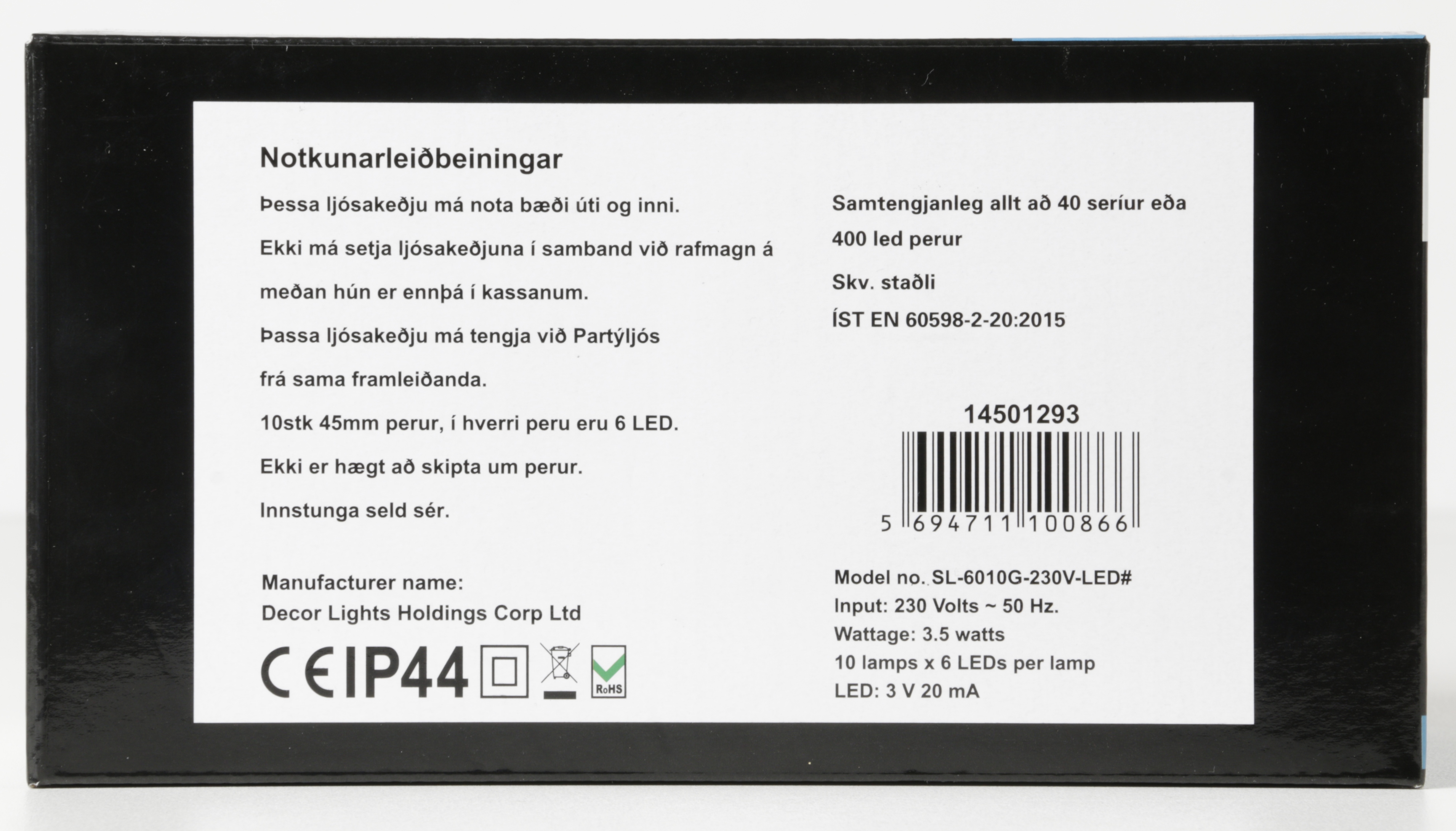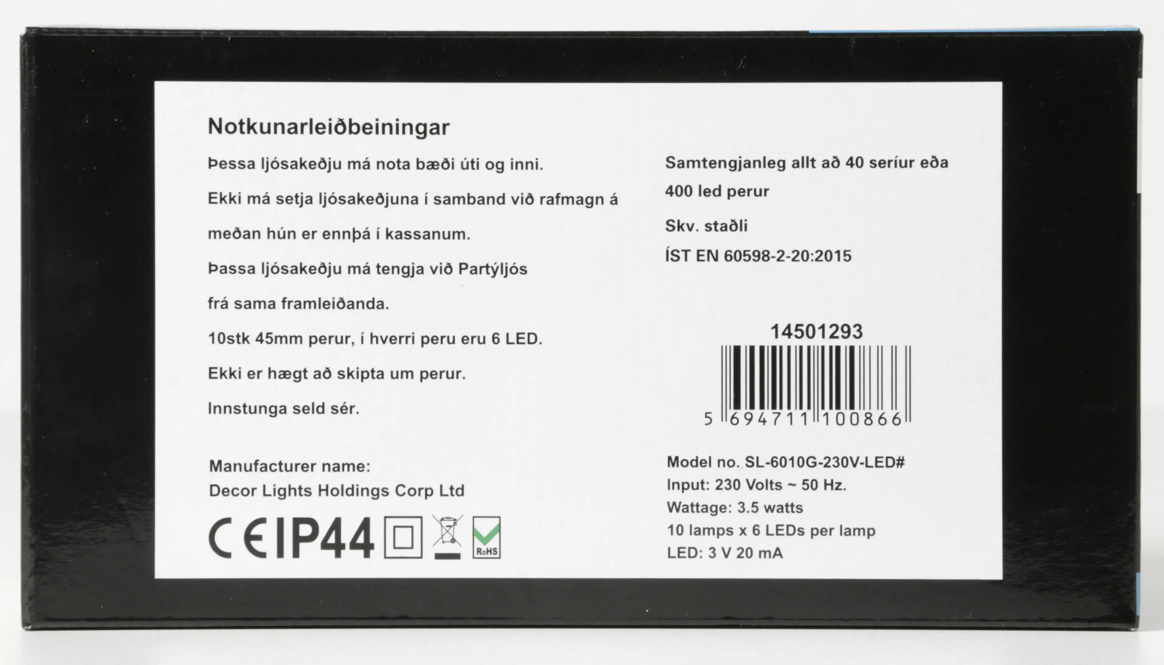 - IP44 – vatnsvarið og hentar utandyra