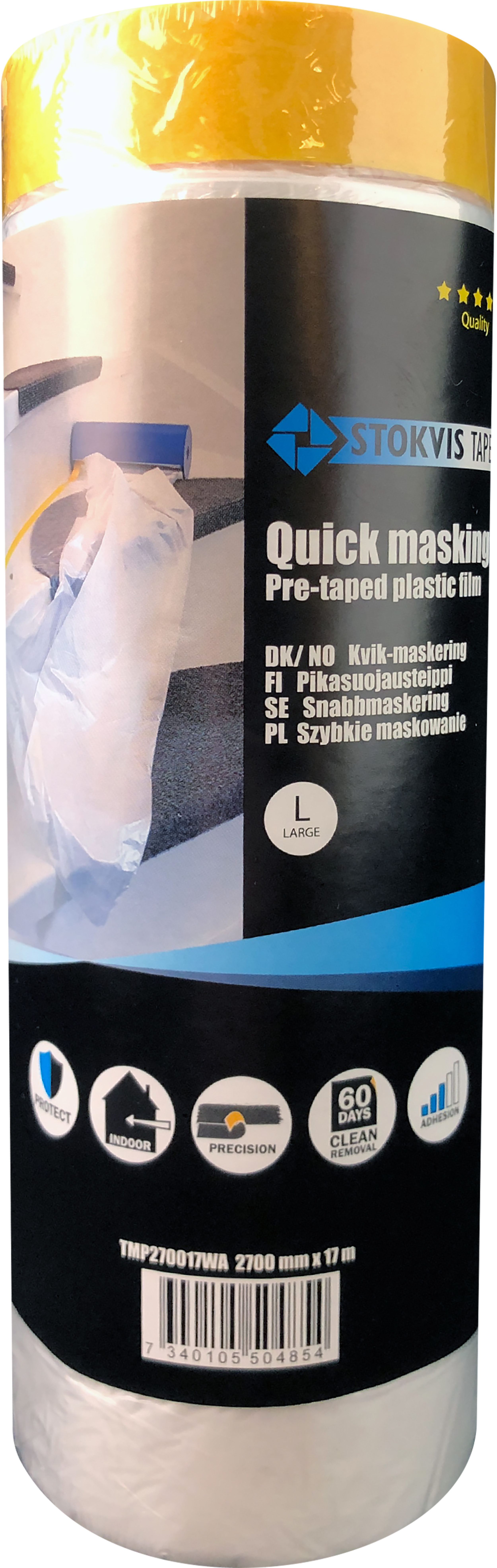 Plastyfirbreiðsla með UV þolnu washi málningarlímbandi. Getur verið á fletinu í nær 60 daga án þess að skilja eftir límingu.