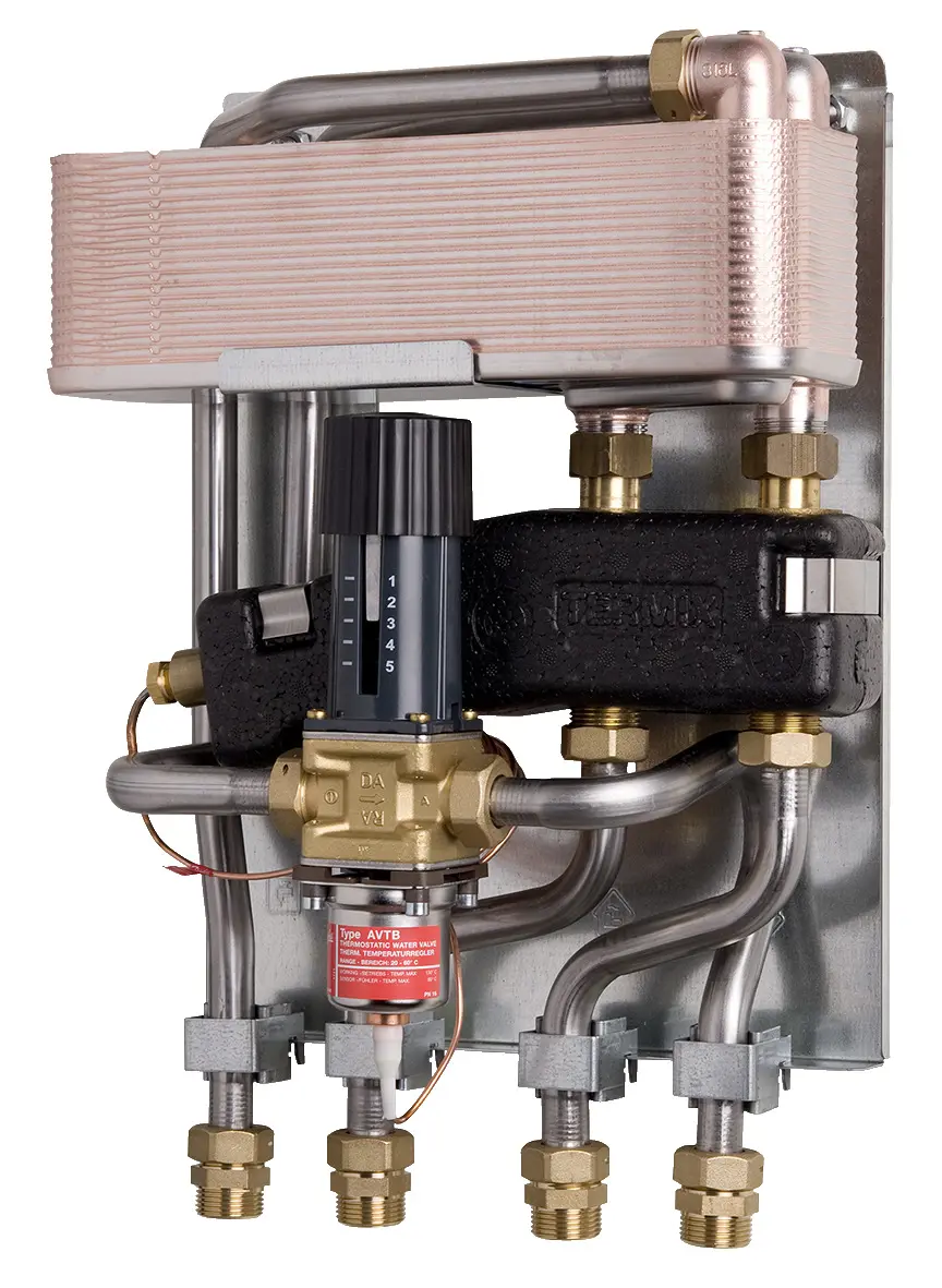 Afköst: 100 kW 75/19°C, Flæði 30 l/m