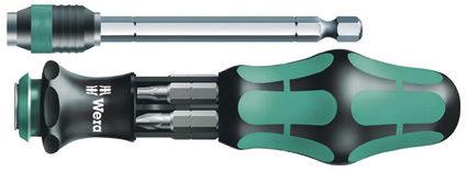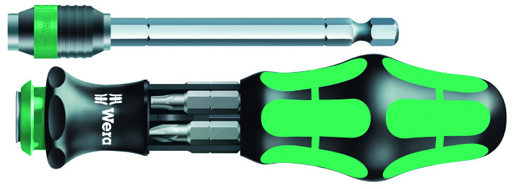 Bitasett frá Wera. Bitaskrúfjárn með bitum í haldfangi og lengjanlegum bitahaldara