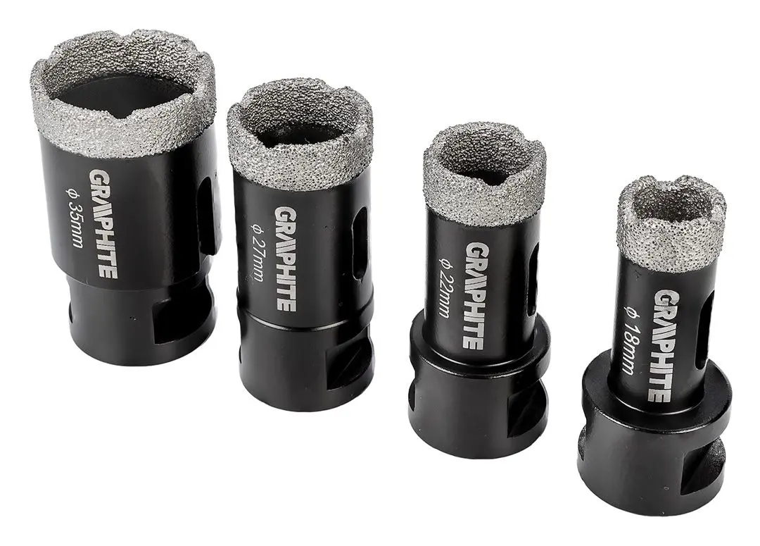 Demants flísaborasett frá Graphite. 4stk: 18, 22, 27 og 35mm.