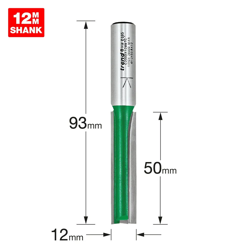 TWO FLUTE 12MM X 50MM 93MM OL CW CT