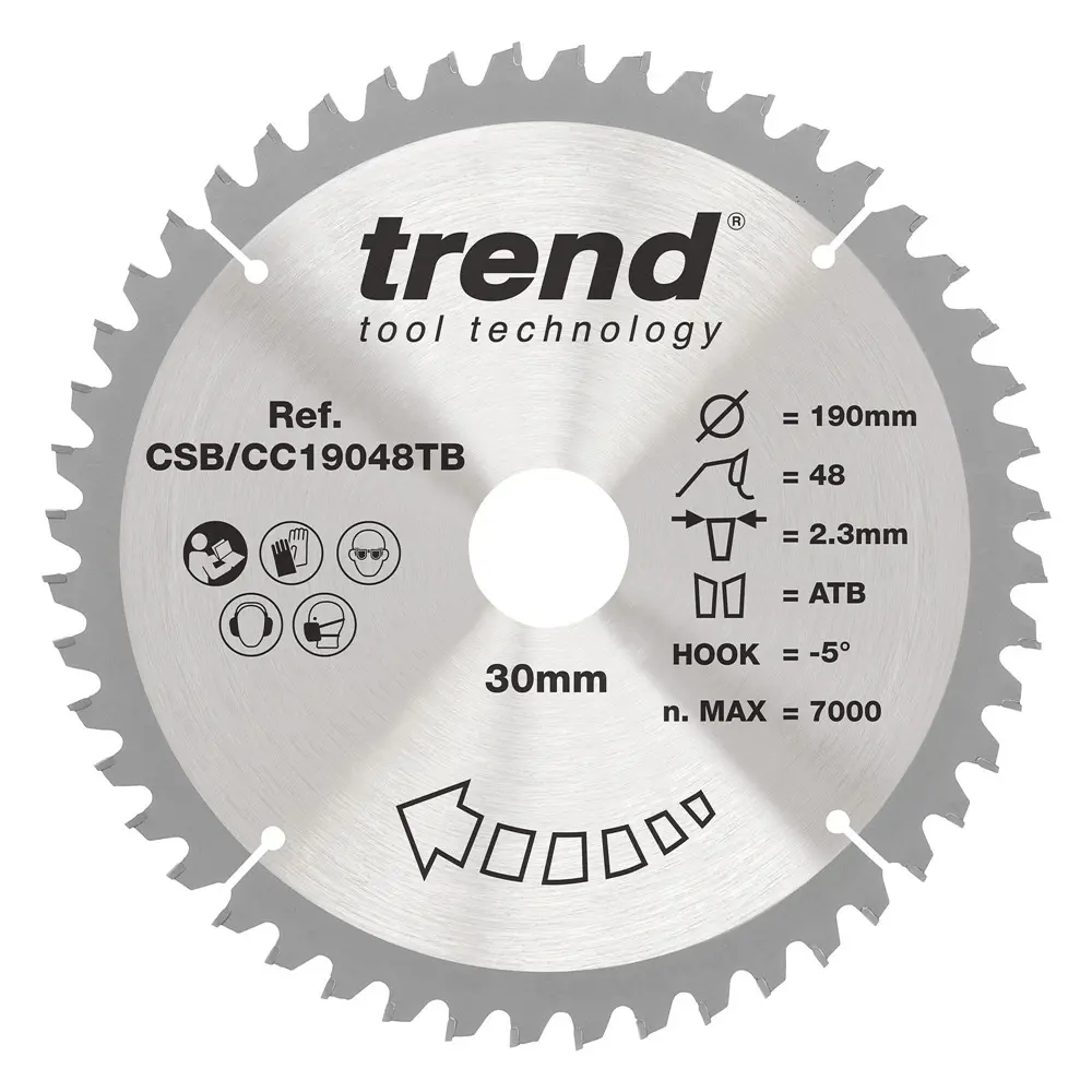 Trend CSB/CC19048TB er hágæða hjólsagarblað með 48 TCT-tönnunum, hannað fyrir fínan og nákvæman skurð í tré og plötuefni. Þunnt skurðspor (1,6 mm) dregur úr mótstöðu, sparar orku og lengir rafhlöðuendingu í rafhlöðuknúnum sögum. Hitadreifandi göt lágmarka titring og hitauppsöfnun þannig að blaðið heldur lögun sinni og skilar stöðugum skurði.