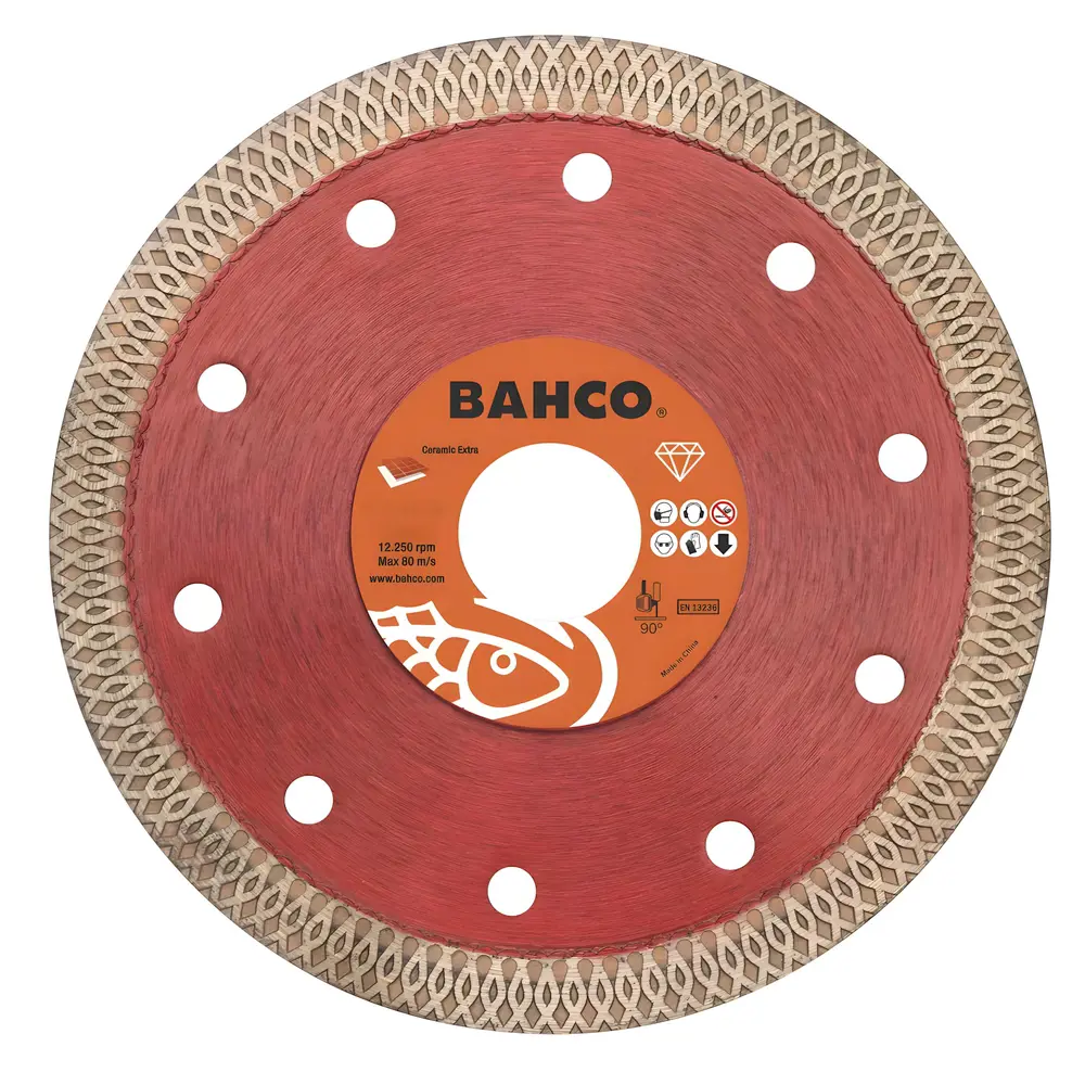 Hentar fyrir þurran eða blautan skurð Í samræmi við EN13236 3916 Keramik aukin gæði: 10mm samfelld demantsfelgur Til noktunar í postulíni, keramik, gleri, marmara, terrakóta, graníti, steini, gólf- og veggflísum. Extra þunnt blað (1,2 mm) fyrir hraðan skurp og minni efnissóun