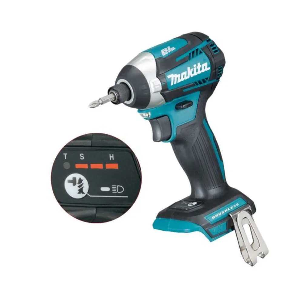 Kolalaus mótor – Meiri afköst og lengri ending. 175 Nm hámarks togkraftur – Fyrir krefjandi verkefni. 3 hraðastillingar + sjálfvirkur skrúfuhamur (A-Mode) – Tryggir nákvæmni og dregur úr skemmdum á festingum. Mjög létt og meðfærilegt – Aðeins 1,5 kg með rafhlöðu (án rafhlöðu: 1,2 kg). Innbyggð LED lýsing – Bætir vinnuaðstæður í dimmu umhverfi. 1/4" sexkanta festing – Auðvelt að skipta um bita. Tæknilegar upplýsingar: Spenna: 18V Togkraftur: 175 Nm Snúningshraði: 0-1.100 / 0-2.100 / 0-3.600 sn/mín Höggtíðni: 0-1.100 / 0-2.600 / 0-3.800 högg/mín Festing: 1/4" sexkanta (Quick Release) Þyngd: 1,2 kg (án rafhlöðu) Kenur án rafhlöðu og hleðslutækis.